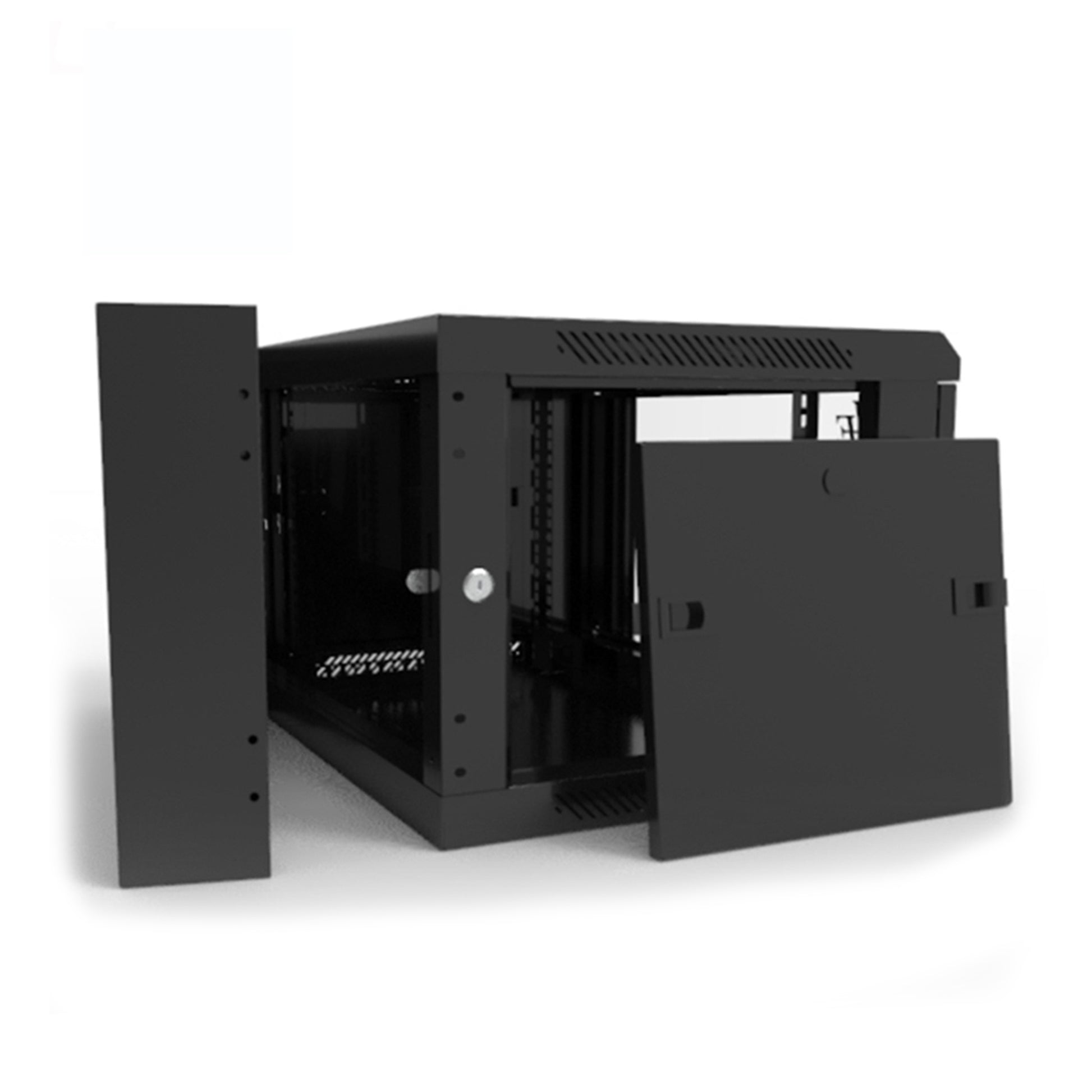 The Wall Cabinet Swing Frame is a 19-inch wall mount racking cabinet providing solutions for small networks at a low cost. They are utilized for various applications such as networking patch panels telecommunications, surveillance or networking switches, where floor space is at a premium they are the ideal product.