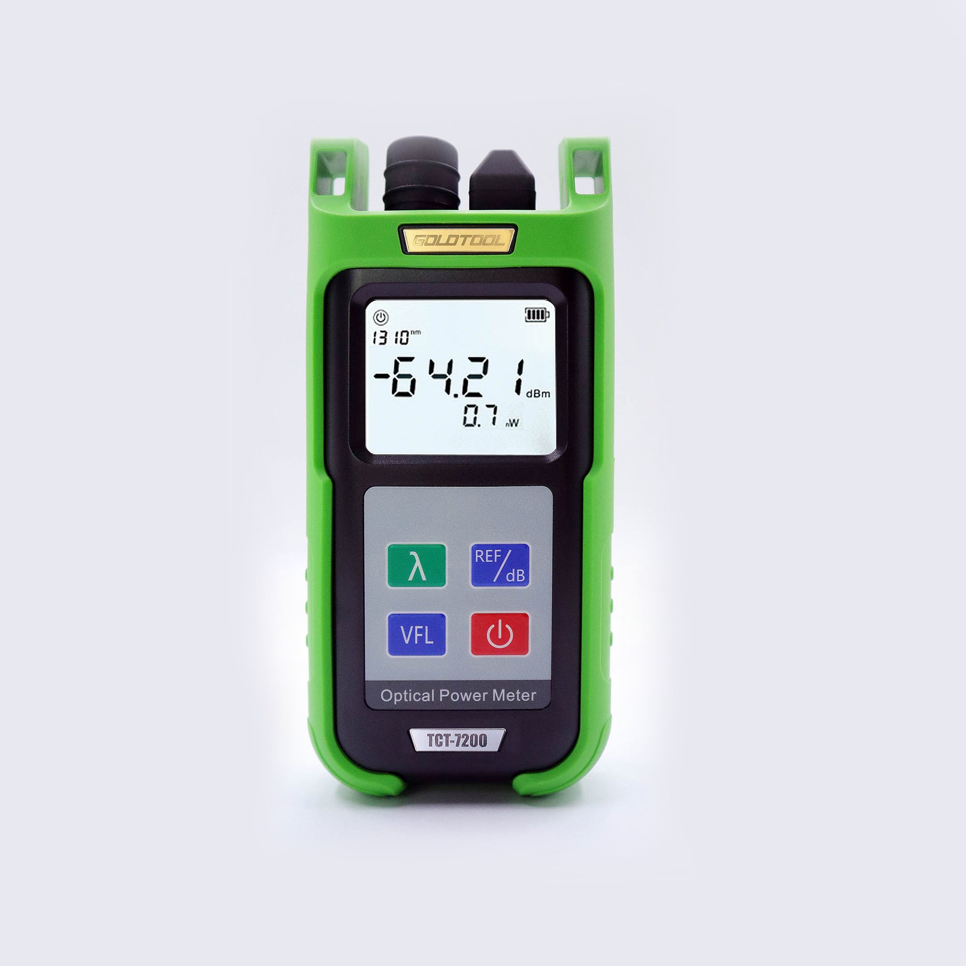 The GoldTool Optical Light Source is a combined optical power meter and visible light source locator, tailored for all FTTX applications. It features 6 test wavelengths, including optional 850, 1300, 1310, 1490, 1550, and 1625, suitable for both single and multimode.
